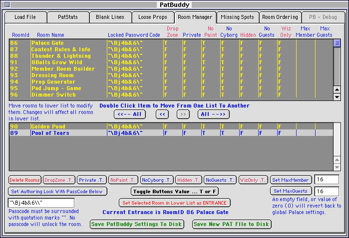 pat file, the rooms in the top list CAN NOT BE changed. Rooms