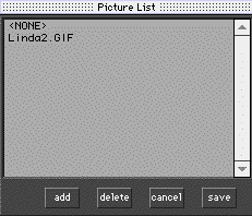 Go back to the PICT dialogue box in the Door Info dialogue box. Remember that the door initially came with <none> in the first line. That initial <none> state is called 0. That means no picture will appear if <none> is the first line in that box. But you can delete the <none> and start adding your own GIFS. Look at the example below: